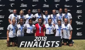 Congratulations to the Surf G2014 White team on their Pats Cup Championship! They won their first 3 games and faced off against an undefeated and strong LAFC team. The championship was played under the lights at the beautiful OC Great Park fields. It was a back and forth game with the parents form both sidelines cheering on their feet the entire game. Our Surf girls scored a goal late in the second half and won 2-1 for a memorable championship! Way to go, Surf!